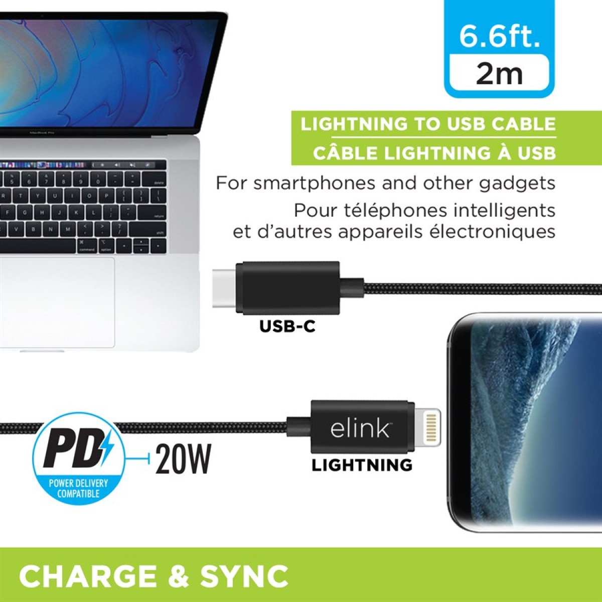eLink 6.6ft Type-C to Lightning 20W Power Delivery fast charging cable