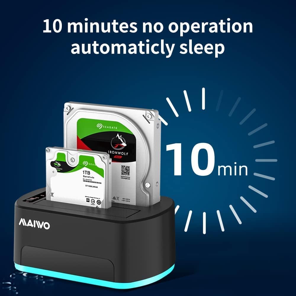 MAIWO External Dual Bay Hard Drive Docking Station with Offline Clone, USB 3.0 SATA Duplicator for 2.5” 3.5” HDDs and SSDs, with RGB Lights & Power Supply, UASP Supported, Black