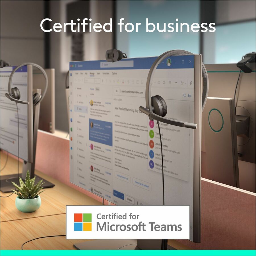Enjoy clear audio on Teams calls with Logitech H570e, certified for Microsoft Teams. This entry-level headset delivers better sound with easy controls for enhanced communication and productivity. It features enterprise-quality audio with dual noise-canceling mics and a 30 mm driver. Convenient inline controls and a dedicated Teams button make it easy to manage calls, adjust volume, and mute or unmute. Designed for sustainability and comfort, H570e offers a lightweight design with a minimum of 54% post-consumer recycled plastic(1) in the plastic parts, padded headband, and replaceable earpads. It’s perfect for long online calls and meetings.