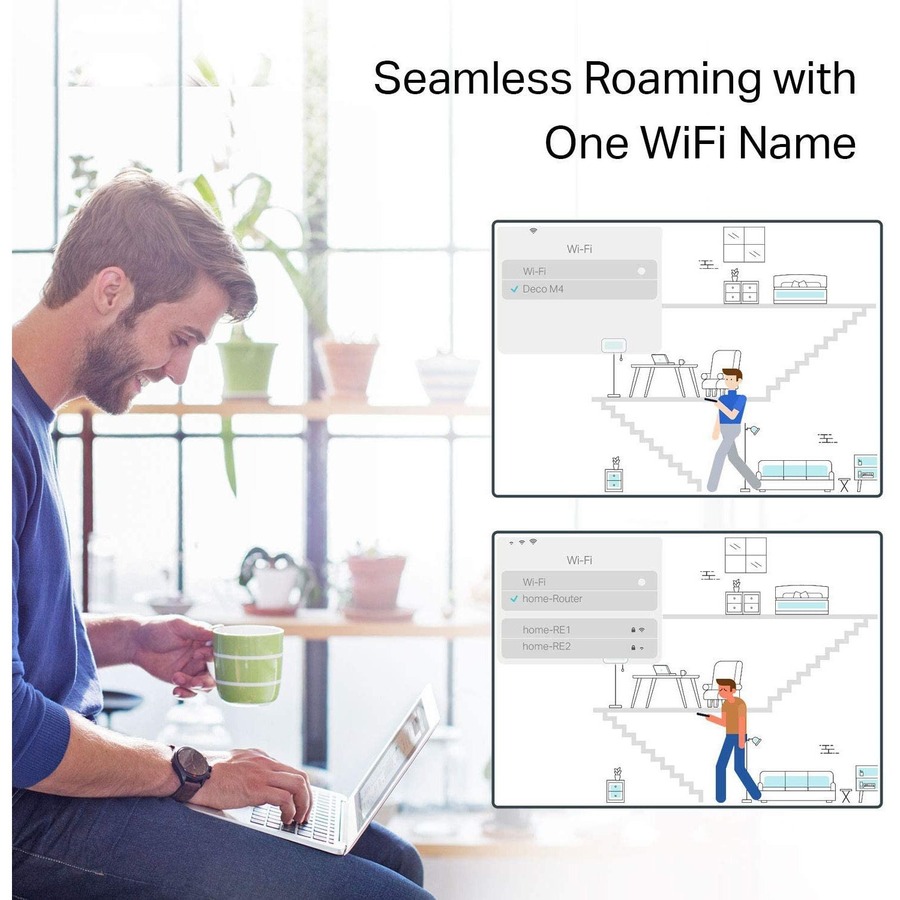 TP-Link Mesh means Deco units work together to form one unified network. Your phone or tablet automatically connects to the fastest Deco as you move through your home, creating a truly seamless Wi-Fi experience.