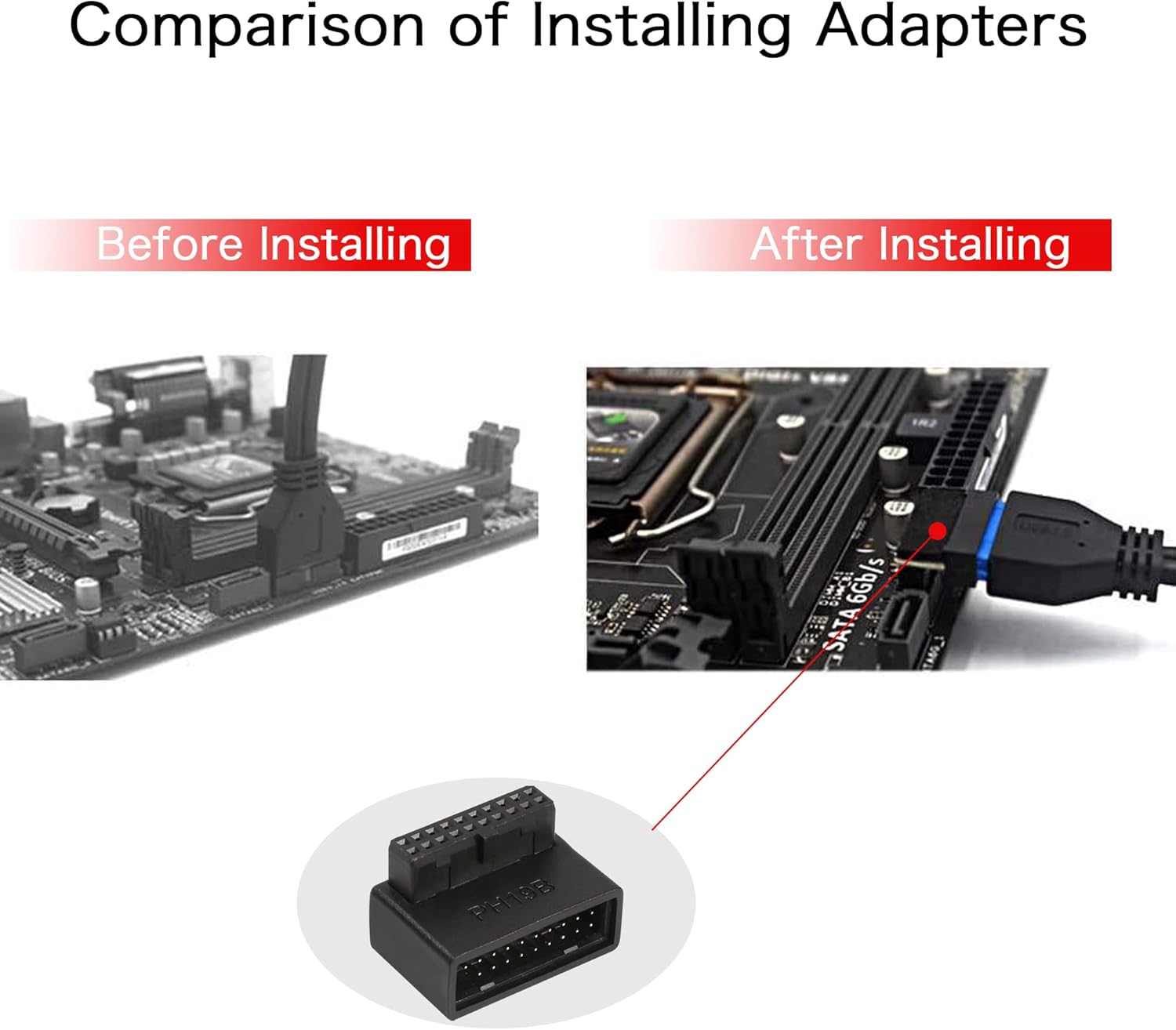 SHANFEILU USB 3.0 90 Degree Motherboard Adapter 19 Pin/20 Pin Male to Female Extension Adapter L Turn Right Angle Socket for Desktop Motherboard (Down Angle PH19B)